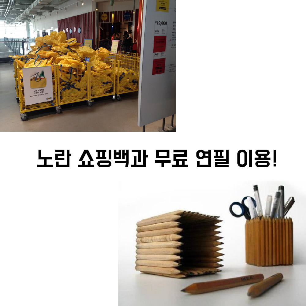 노란 쇼핑백과 연필은 쇼핑 하는 곳곳에 비치되어 있으며